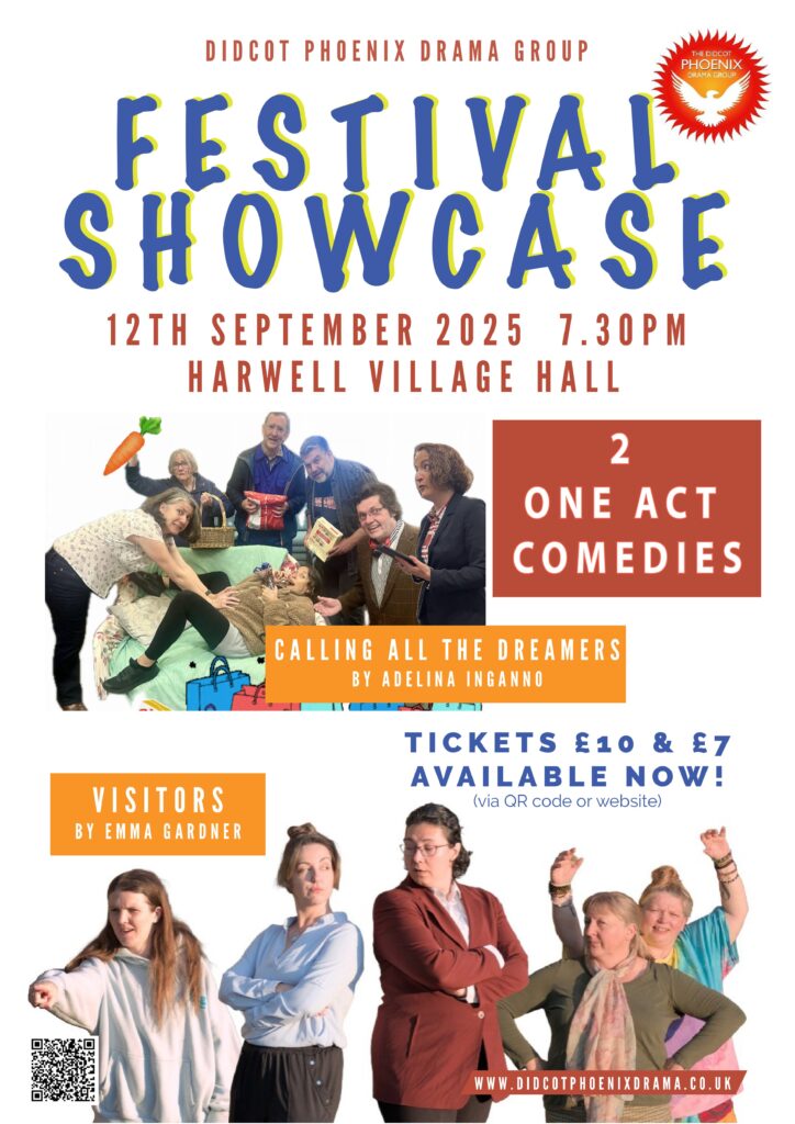 Didcot Phooenix Drama Group are pleased to present a Showcase evening of two award winning one-act plays, on Friday 12th September at 7.30pm in Harwell Village Hall. Reviving two pieces from this year’s Oxfordshire theatre festival season, we bring you Visitors by Emma Gardner and Calling All the Dreamers by Adelina Inganno.
