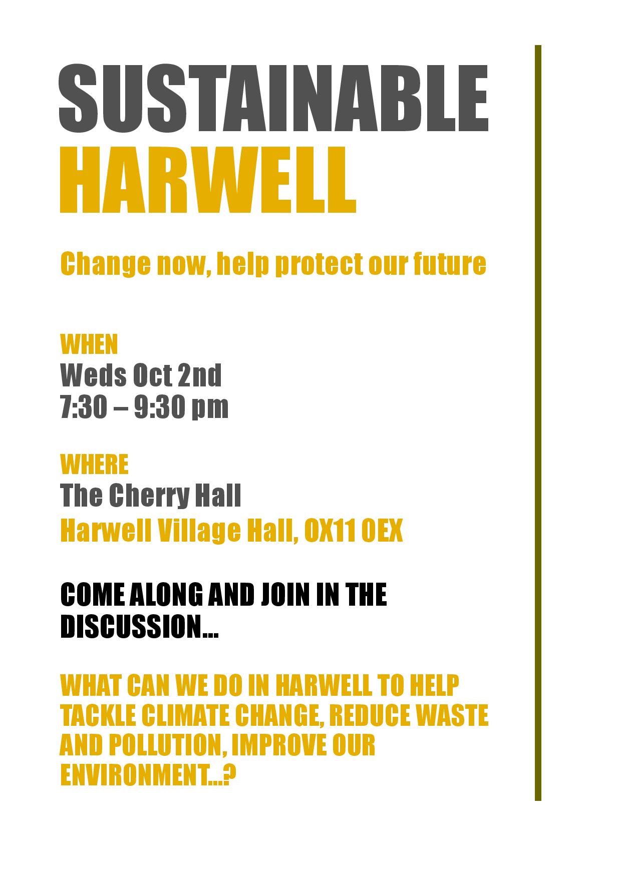 Come along and join in the discussion and planning about actions we can take as a community in Harwell to help tackle climate change, reduce waste and pollution and improve our environment.
